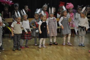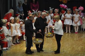 Jak co roku minutą ciszy uczczono pamięć zmarłych koleżanek i kolegów i jak zawsze w tym dniu wspólnie odśpiewano górniczy hymn. Członkowie grojeckiego Stowarzyszenia zaprosili przedszkolaków. Za sprawą ich występów zapanowała rodzinna atmosfera. Po piosenkach o jesieni i zimie dzieci przypomniały "Karolinkę", a na finał złożyły rodzicom i dziadkom śpiewane życzenia "Stu lat". Prezes Albin Kojm zrewanżował się maluchom, wręczając dyrektor przedszkola Agnieszce Pękali kosze pełne słodkości. Do powinszowań dołączył sołtys Grojca Krzysztof Wolak.