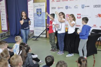Jednak zanim w sali gimnastycznej pojawił się Cezary Trybański, czwarto-, piąto- i szóstoklasiści mieli okazję podsumować wiadomości związane ze zdrowym trybem życia. Fizjoterapeutka rozmawiała z młodzieżą o korzyściach z zażywania ruchu, o postawie wyprostowanej i siedzeniu przy komputerze oraz o tym, jak przerwy na choćby krótką gimnastykę pomagają "przewietrzyć" umysł. Prelegentkę zaskoczyła wysoka świadomość uczniów – widocznie nie wiedziała, że ma do czynienia z uczestnikami akcji "Lekki Tornister".
