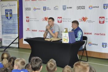 Kolejnym gościem był specjalista od koszykarskich wsadów Aleksander Maślanka, który podzielił się z młodymi grojczanami życiową pasją, prezentując prawdziwe akrobacje pod koszem. Młodzież nagradzała jego ewolucje wrzawą i brawami. A kiedy przeskakiwał nad trójką uczniów, nawet nauczyciele przecierali oczy ze zdumienia.