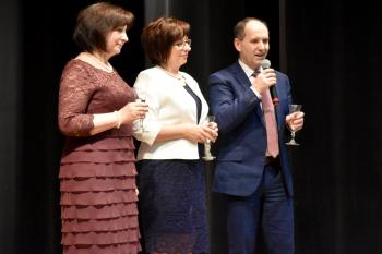 Finałowym akcentem części oficjalnej był toast. Do jego spełnienia i złożenia życzeń noworocznych wójt Mirosław Smolarek zaprosił zastępcę Halinę Musiał i przewodniczącą Rady Gminy Oświęcim Bernardynę Bryzek.