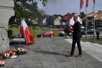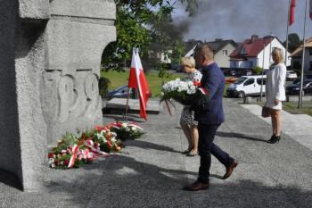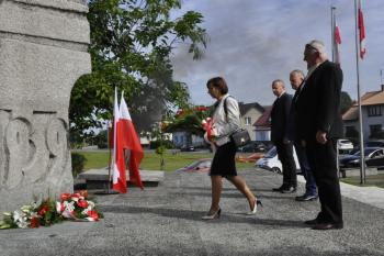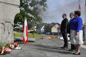 W asyście pocztów sztandarowych kwiaty przy pomniku upamiętniającym polskich żołnierzy złożyli wójt Mirosław Smolarek i jego zastępca Halina Musiał oraz delegacje: władz powiatowych ze starostą Marcinem Niedzielą, radnych Gminy Oświęcim z przewodniczącą Bernardyną Bryzek i oświęcimskiego magistratu.