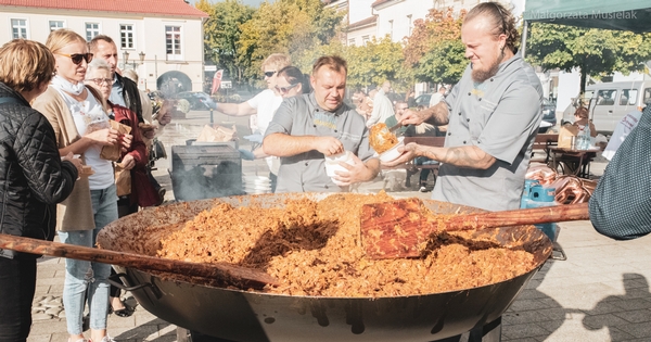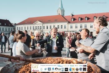 Pierwszy raz na płycie rynku w Oświęcimiu stanęła ogromna, mierząca dwa metry średnicy patelnia. Doświadczeni szefowie kuchni od rana przygotowywali na niej wspaniały, jak się po kilku godzinach okazało, bigos. Wśród gości „Pozytywnego zakończenie lata”, którzy docenili talenty kucharzy, byli wójt Mirosław Smolarek z małżonką.