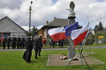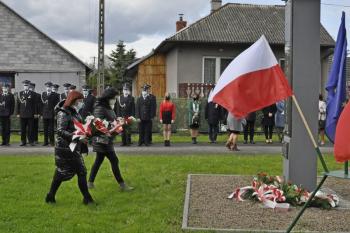 Kwiaty przed postumentem "Orzeł Niepodległości" złożyli delegaci gminnych władz i sołectw, sołtys Włosienicy Władysław Zaliński, ksiądz proboszcz Rafał Jończy, przedstawiciele Stowarzyszenia Emerytów "Wspólnota Razem", szkoły, przedszkola, Uniwersytetu Każdego Wieku, Ludowego Klubu Sportowego "Sygnał", Koła Gospodyń Wiejskich oraz strażacy, którzy byli współorganizatorami uroczystości.