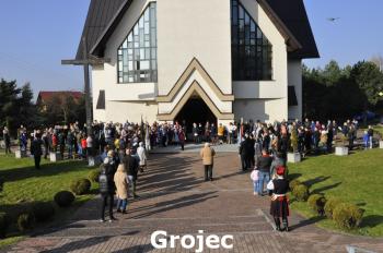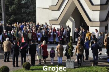 Pierwszym akcentem obchodów 11 listopada były uroczyste msze. Znakiem szczególnym nabożeństw celebrowanych w tym dniu były patriotyczne pieśni intonowane przez miejscowe zespoły śpiewacze. Śpiew rozbrzmiewał także poza murami kościołów, tak jak w Grojcu, gdzie mieszkańcy na zaproszenie proboszcza i Biblioteki przyłączyli się do akcji "Niepodległa do Hymnu!".