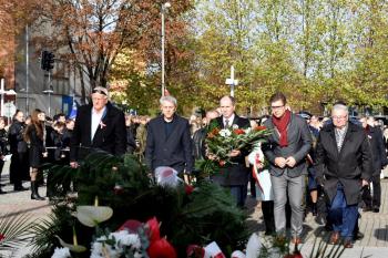 Kolejna odsłona uroczystości miała miejsce na na placu Tadeusza Kościuszki. Delegacje władz samorządowych, organizacji społecznych i politycznych oddali hołd bohaterom Niepodległości, składając kwiaty na płycie Pomnika Nieznanego Żołnierza.