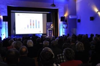 Tematem wystąpienia Mirosława Smolarka stały się również wydarzenia ostatnich trzech lat: pandemia koronawirusa i wojna w Ukrainie. Postawiły one przed samorządem nowe wyzwania i cele. Szczególny wpływ miał rządowy program Polski Ład, który w opinii włodarza gminy Oświęcim zmniejszy w bieżącym roku wpływy do gminnego budżetu o ok. 10 mln złotych uniemożliwiając wiele inwestycji. Swoją prezentację wójt Smolarek zakończył podziękowaniami dla współpracowników.