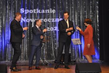 Spotkanie Noworoczne otworzyła projekcja filmu promującego gminę Oświęcim, który – mimo że przygotowany w trakcie pandemicznych obostrzeń – pozostał aktualny i stanowi atrakcyjną wizytówkę wszystkich 13 sołectw. W imieniu gospodarzy – wójta Mirosława Smolarka i jego zastępcy Haliny Musiał – przybyłych na Spotkanie Noworoczne gości przywitała Ewelina Łazarz.