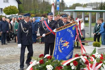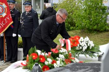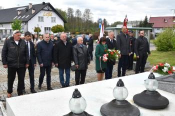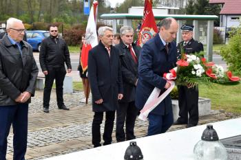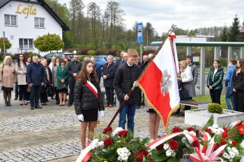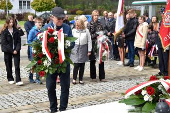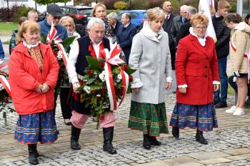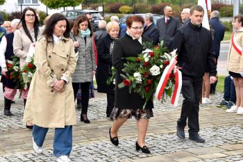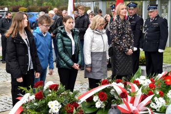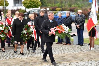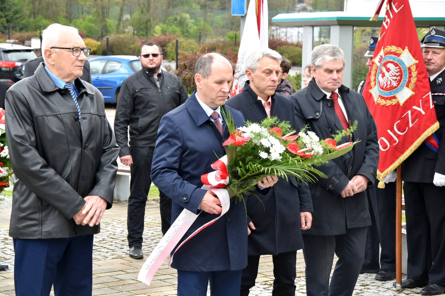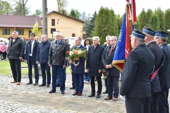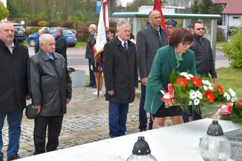 Przedstawiciele władz samorządowych – z wójtem Mirosławem Smolarkiem i przewodniczącą Rady Gminy Bernardyną Bryzek na czele złożyli kwiaty przy Pomniku Poległym i Pomordowanym podczas wojen światowych.