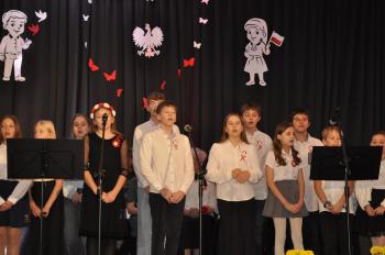 Była to już ósma edycja patriotycznego spektaklu „Niepodległość Pieśnią Opowiedziana”. Widowiskowy koncert, który po wspólnym odśpiewaniu Mazurka Dąbrowskiego i Roty rozpoczęła pieśń Jana Pietrzaka „Żeby Polska była Polską”, prowadziła była dyrektor Szkoły Podstawowej w Porębie Wielkiej - Małgorzata Bucka.