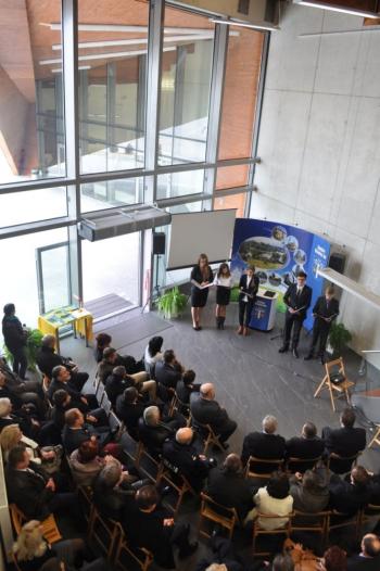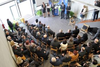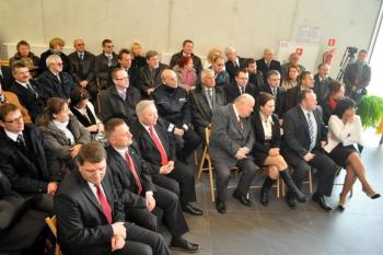 Pojawili się także projektanci futurystycznej bryły obiektu i jego budowniczy, lokalni przedsiębiorcy, duchowni, szefowie gminnych instytucji, radni i sołtysi. Stronę rządową reprezentował wicewojewoda małopolski Andrzej Harężlak.