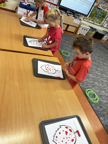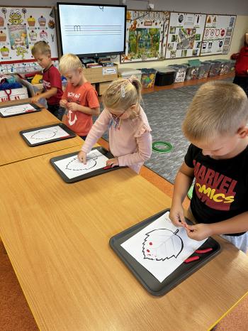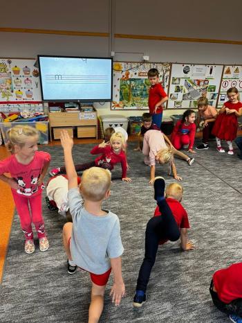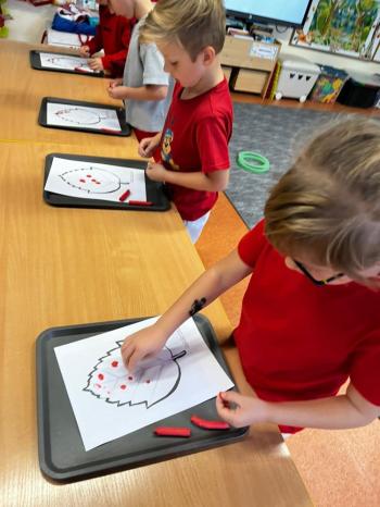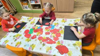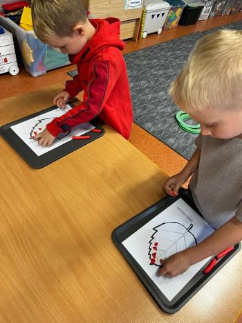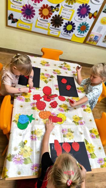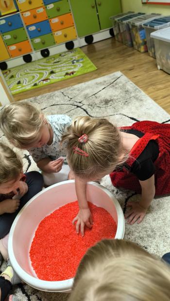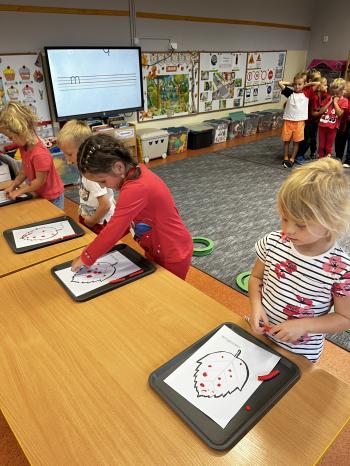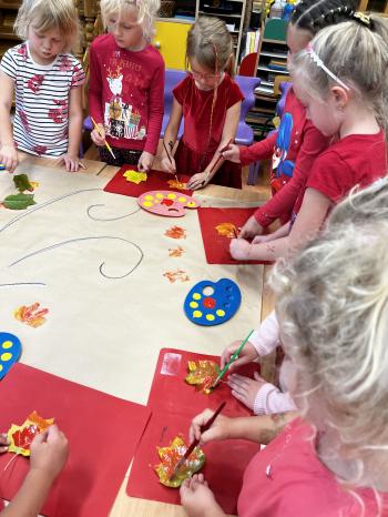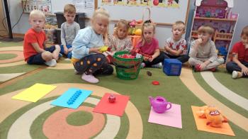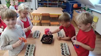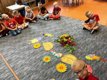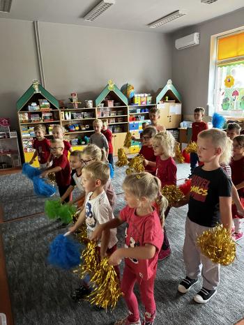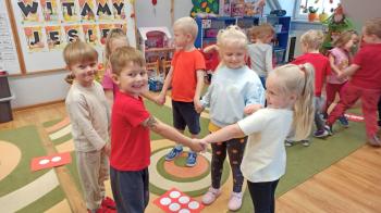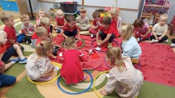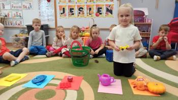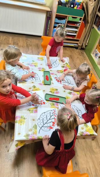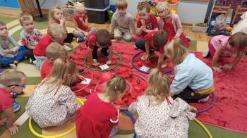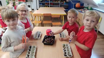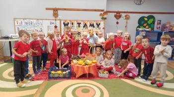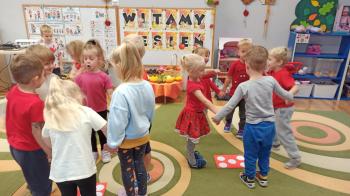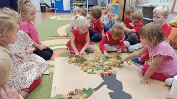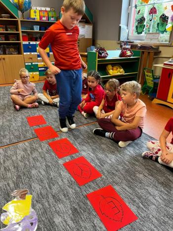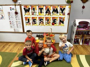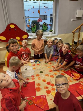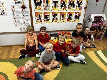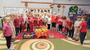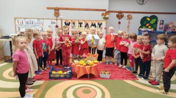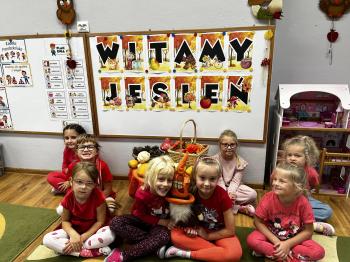 W dniu 23 września przedszkolaki w kolorze czerwonym powitały jesień. Każda grupa zrobiła to na swój sposób.