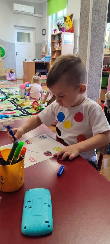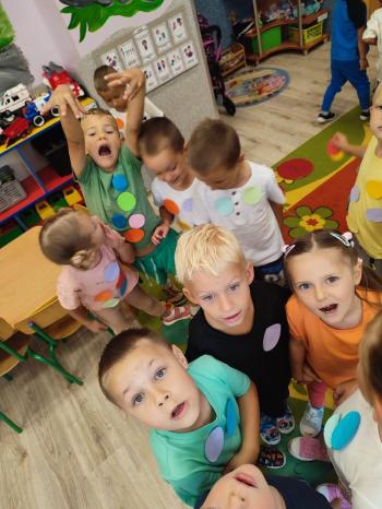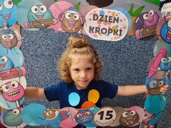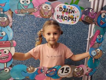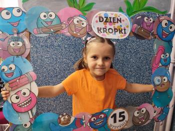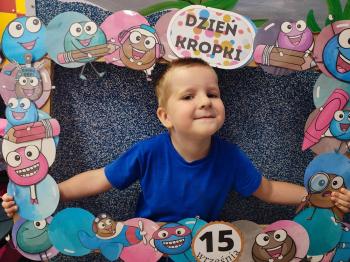 15 września obchodziliśmy w naszym przedszkolu Międzynarodowy Dzień Kropki. Przesłaniem tego dnia jest wzbudzenie u dzieci kreatywności, pomysłowości oraz zachęcenie ich do tworzenia, działania. Tego dnia ubrania dzieci wypełnione były kolorowymi kropkami. Dzieci poznały opowiadanie jak to zwyczajna kropka zmieniła świat małej Vashti. Brały udział w wielu kreatywnych zabawach oraz tworzyły piękne prace plastyczne których bohaterem była „kropka”.