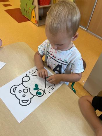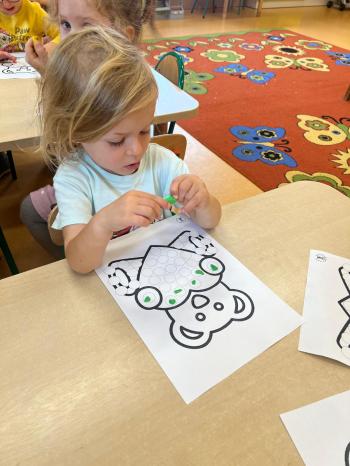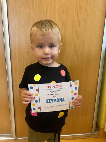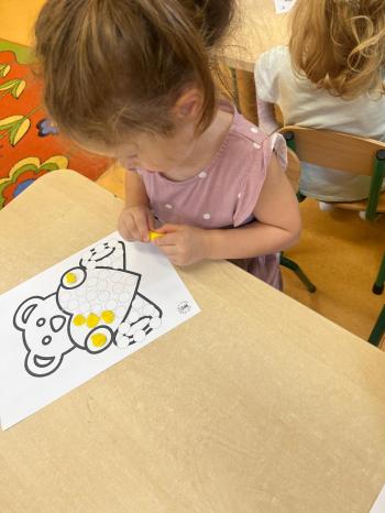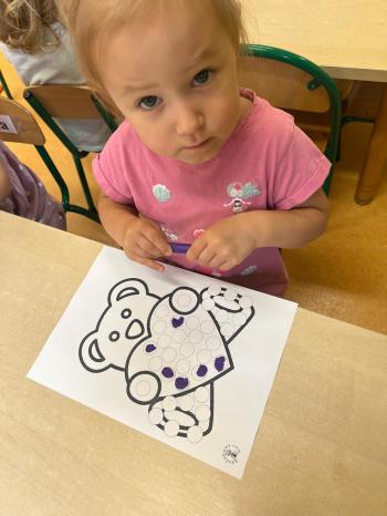 Dnia 16 września bieżącego roku szkolnego grupa „Motylki” obchodziła Dzień Kropki. W ramach zajęć, przedszkolaki odszukiwały w sali kropki w odpowiednich kolorach, jednocześnie poznając przy tym ich nazwy w języku angielskim. Ćwiczyły także koordynację ręka – oko, kiedy przesypywały kolorowe piegi z kubeczka do kubeczka. Przedszkolaki skakały także po kropkach wg kodu oraz instrukcji nauczyciela. Motylki, przeliczały również ilość kropek na biedronce podczas zabawy muzyczno-matematycznej pt. „Kropki Biedronki”. Na koniec, maluszki stworzyły piękne wykropkowane plasteliną misie, ćwicząc tym samym precyzję swoich paluszków. To był bardzo miły-kropkowy dzień, a już nie długo czekają nas kolejne zabawy w trakcie zajęć z okazji Dnia Przedszkolaka. Czekamy z niecierpliwością.