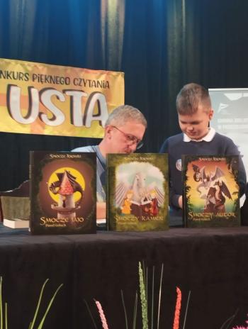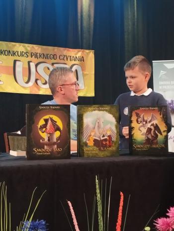 O tytuł Mistrza Czytania starało się 24 uczestników, którzy czytali fragmenty książki „Smocze Jajo” Pawła Gołucha. Po części konkursowej na biorących udział w konkursie i zgromadzoną publiczność czekała niespodzianka - spotkanie z autorem.
