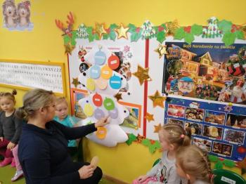 i zainteresowała, pobudziła do dyskusji oraz do zadawania pytań naszych podopiecznych. Pomysłów oraz dobrych rad ze strony dzieci nie brakowało. W trakcie dzieci również dowiedziały się w jaki sposób taka instytucja jak MOPS oraz GOPS niosą pomoc potrzebującym oraz ludziom znajdujących się w gorszej sytuacji. Pani Agnieszka z biblioteki z kolei przeczytała dzieciom ciekawą bajkę „Dziewczynka z zapałkami” oraz wspólnie wykonaliśmy choinkę ozdabiając bombkami wypełnionymi cechami charakteryzujących dobro oraz akceptację.